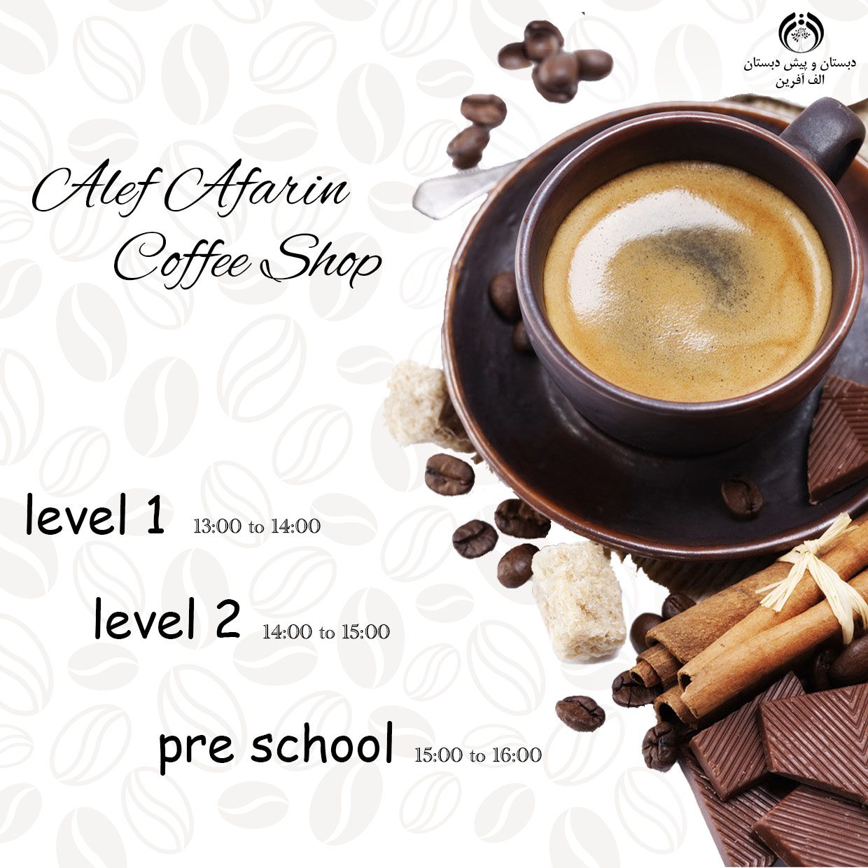 کافی شاپ،کافی،کافه،کافه مدرسه،کافه زبان،زبان انگلیسی،دبسان الف آفرین،کافه الف آفرین